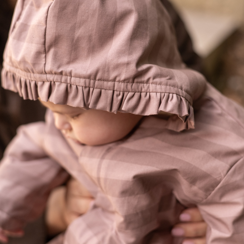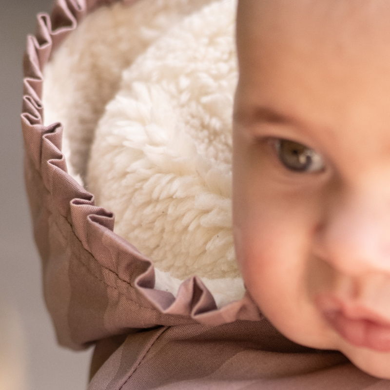 Wrap your little one in cozy comfort with our Sherpa Lined Storm Splash Suit with Ruffles. Made with a water-repellent, non-toxic coated shell and fully lined with soft sherpa, it offers the perfect balance of warmth and practicality. Delicate ruffles frame the hood for a sweet touch, while elasticized cuffs and a removable zipper with hidden snaps make it easy to dress and keep snug. Finished with an interior name tag, it’s as thoughtful as it is adorable. Pehr with our Pathfinder boots for a splash safe look.