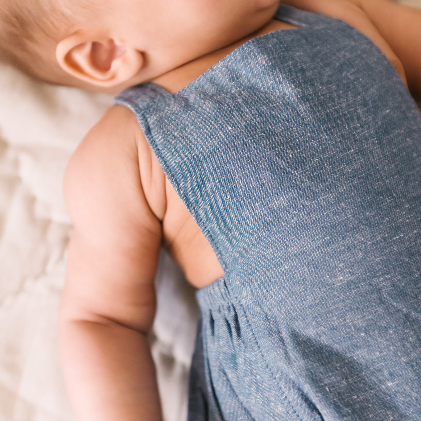 Woven in our cotton-linen chambray, each piece feels light and airy - perfect for sunny days and sweet moments.