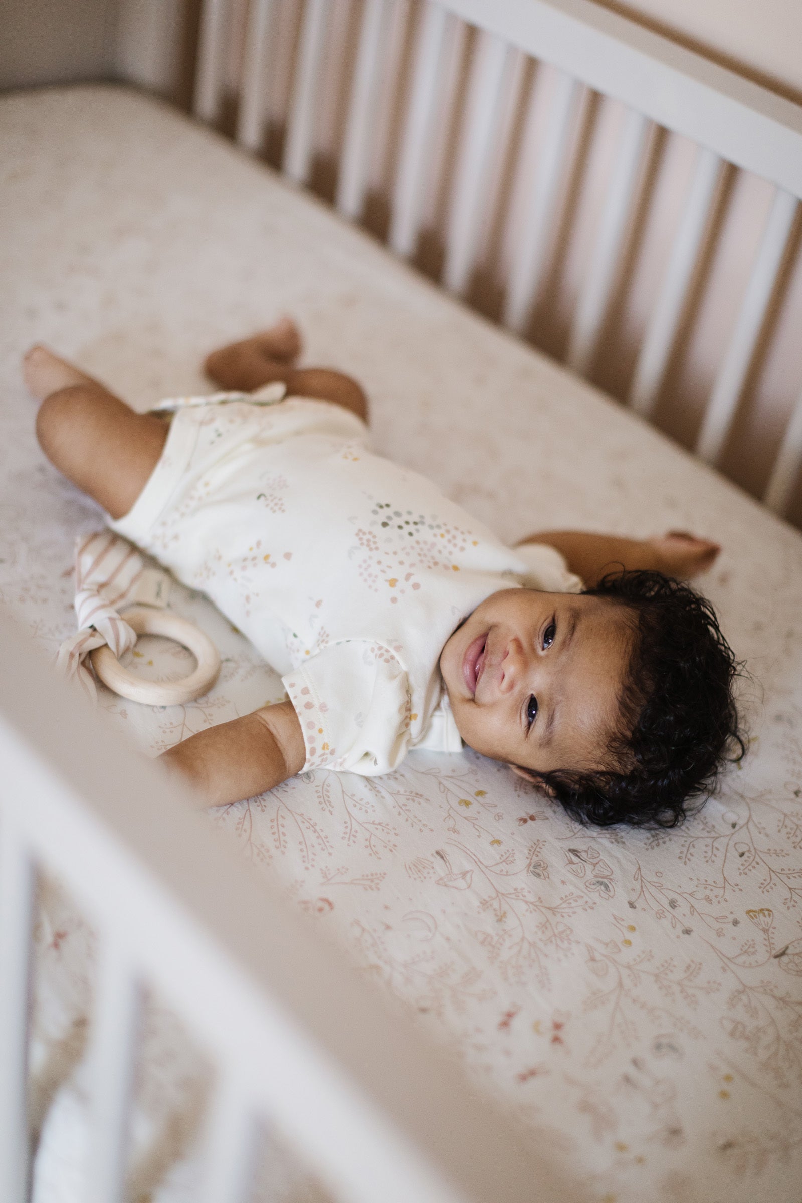 Made with 100% organic cotton and the sweetest sleeve details, our Short Puff Sleeve One-Piece brings tiny buds to bloom. Design with puff sleeves, a key hole back opening, and bottom snaps for easy changes. Easy to layer with Bloomers or Leggings, bottoms snaps, and a keyhole back add sweet and functional details.