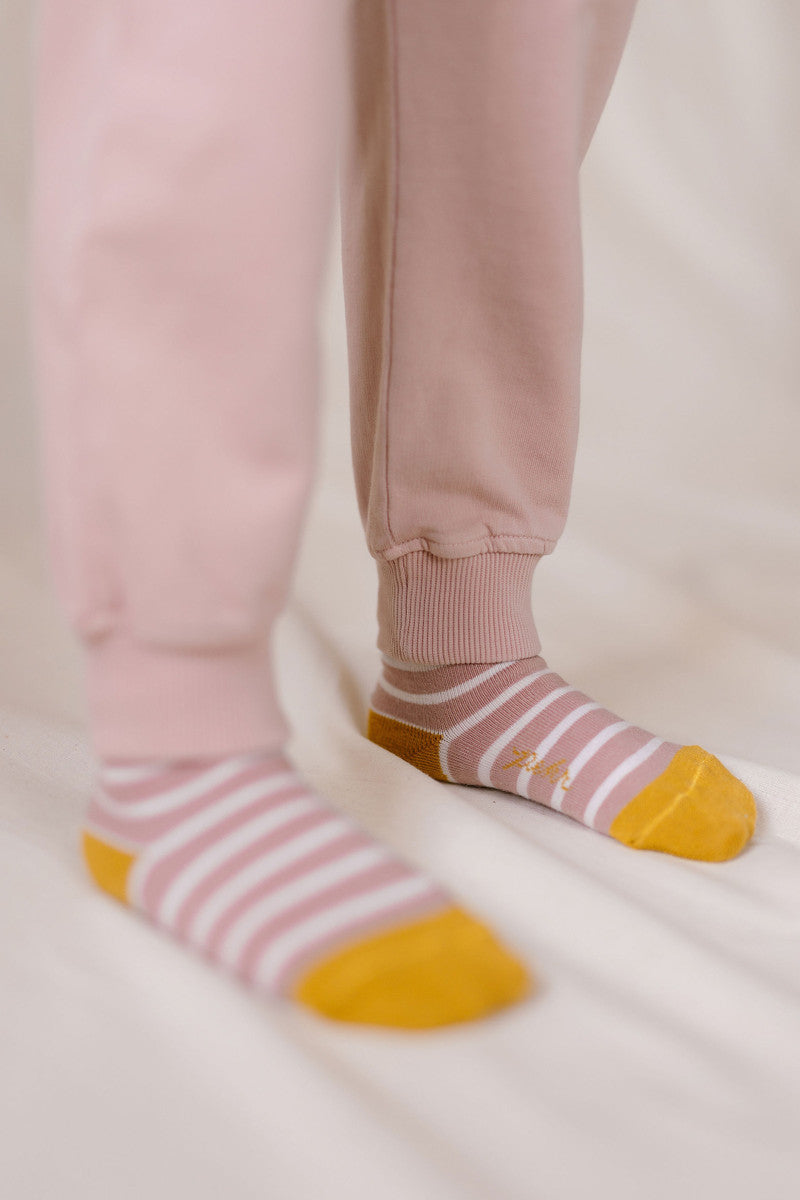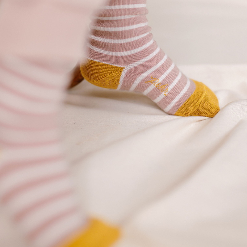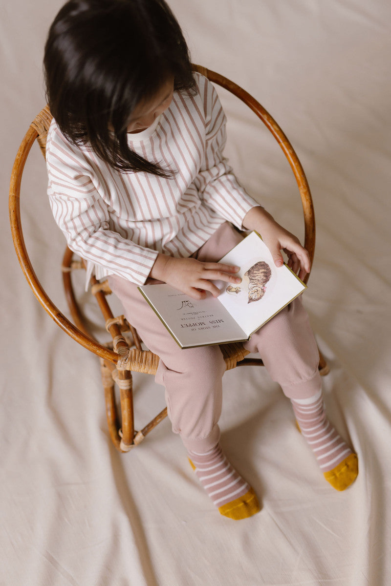 The classic Crew Socks, now in playful stripes. Made from soft, ribbed organic cotton with a touch of stretch, these baby and toddler essentials are designed to stay put and keep little feet cozy. Grips on the soles help early walkers stay grounded, while size markers at the cuffs make sorting simple. ‘Pehr’ them with our Essentials Collection for an effortless everyday outfit.