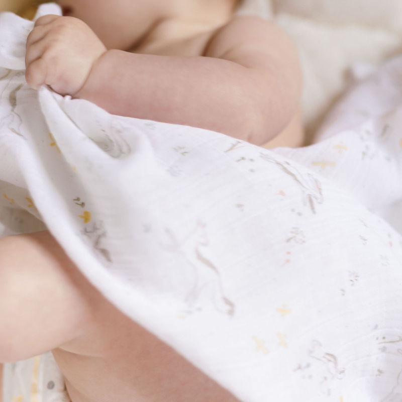 Lightweight and breathable, the airy muslin weave helps regulate temperature, keeping your little one comfy whether it’s nap time or cuddle time.