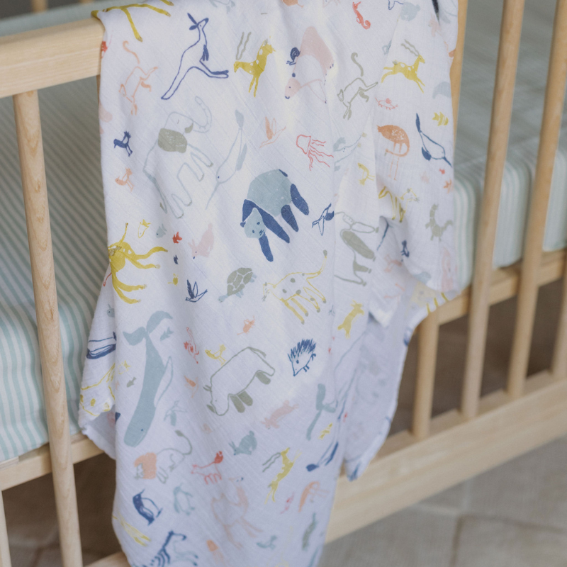 Made from 100% GOTS organic muslin cotton, our ultra-soft Swaddles are as versatile as they are beautiful. Perfect for swaddling, cuddling, or creating a cozy on-the-go spot, they’re designed to grow with your little one. Hand-screen printed with care using AZO-free dyes, these lightweight essentials are gentle on baby’s skin and easy on the planet. Create the perfect nursery with the matching Crib Sheets and Baby Play Mats.