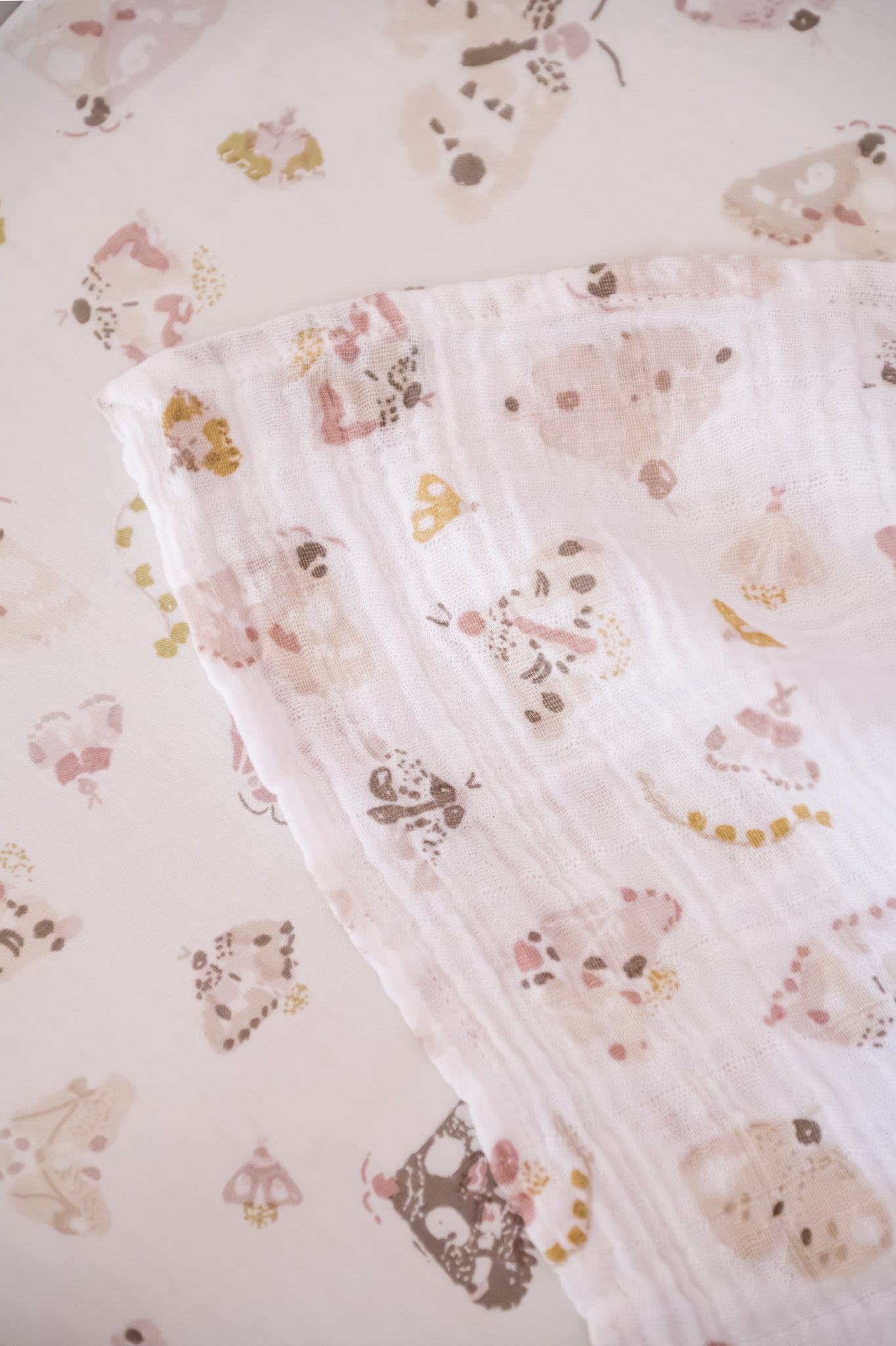 Lightweight and breathable, the airy muslin weave helps regulate temperature, keeping your little one comfy whether it’s nap time or cuddle time.