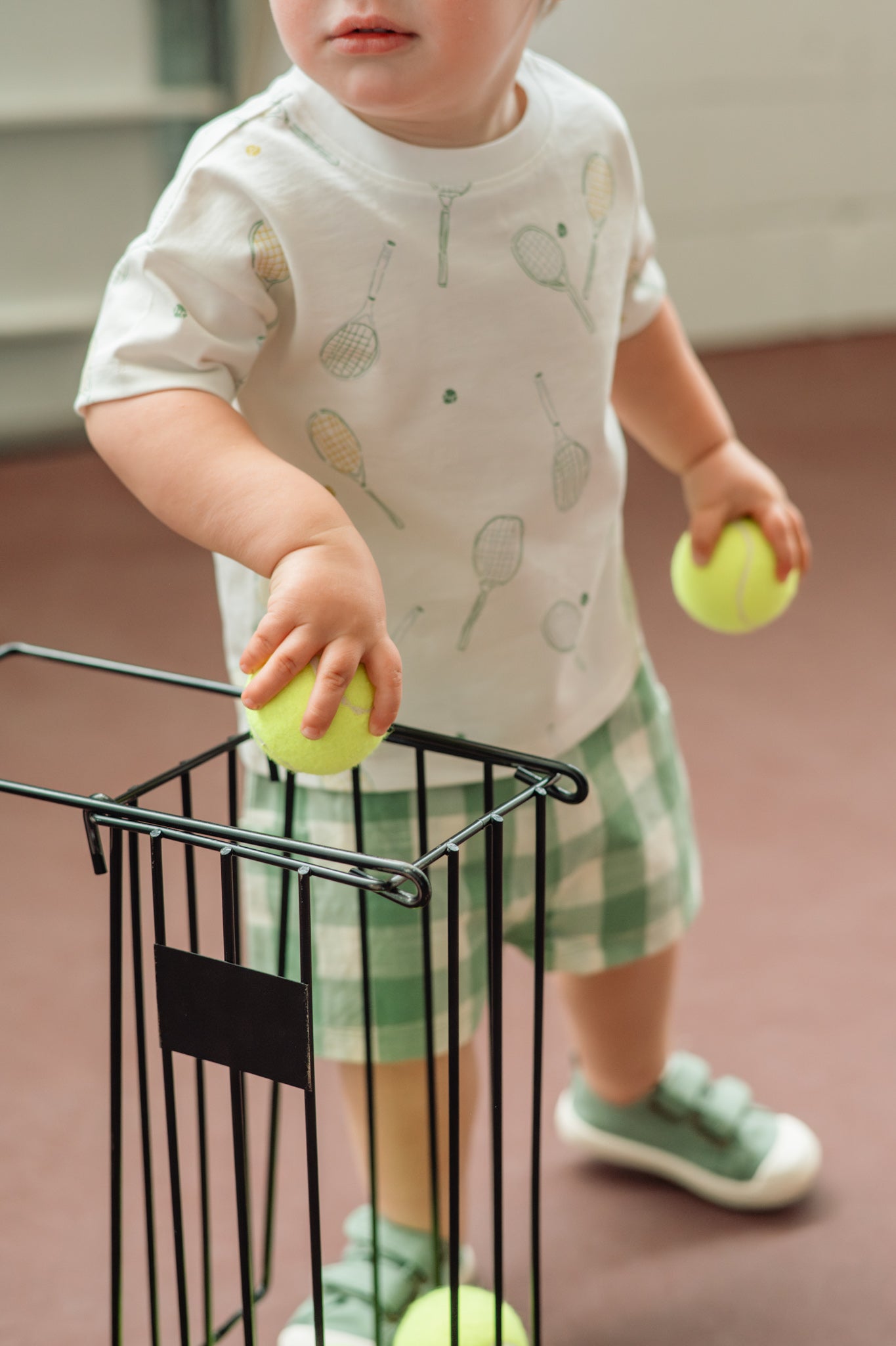 The relaxed, boxy silhouette and drop shoulder design give your little one room to move, explore, and play.