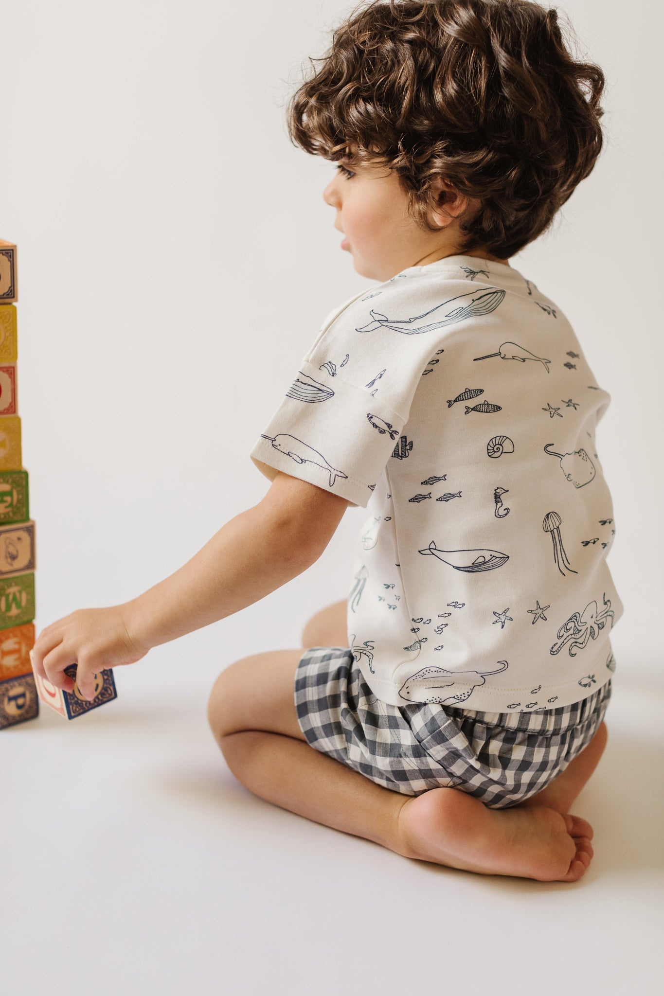 Nothing says summer like a comfortable, lightweight t-shirt! Crafted from GOTS certified 100% organic cotton, this breathable top features a comfy, boxy fit with a relaxed drop shoulder silhouette. Soft, lightweight, and made for easy outfitting - it's the perfect warm-weather staple. Mix and match with our Garment Dye Shorts or Recess Sneakers for a head-to-toe summer look.
