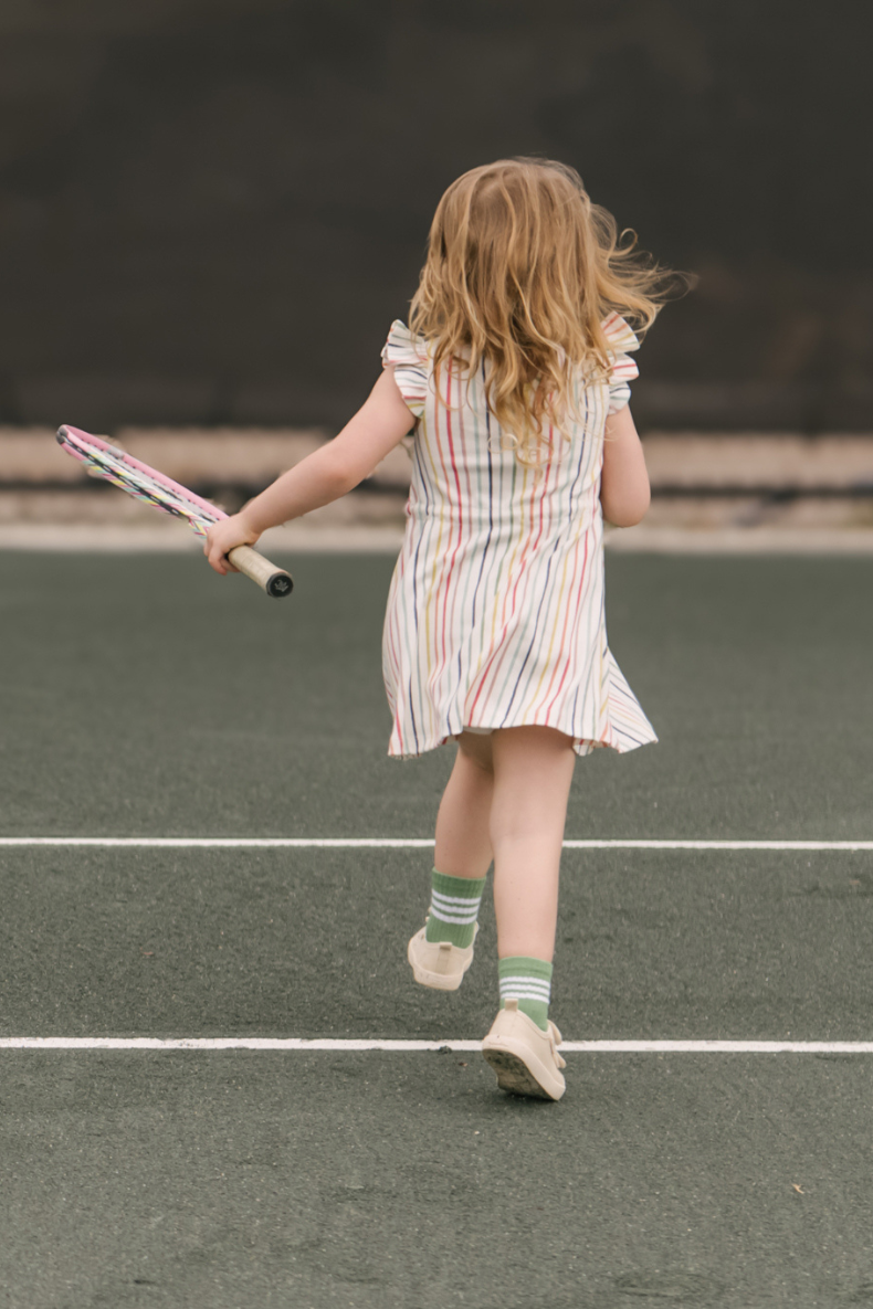 From playground twirls to picture-perfect moments, our Organic Cotton Tank Dress is made for summer adventures. Featuring sweet ruffle sleeves, a comfy tie waist, and an easy keyhole back, this breathable dress is soft on skin and designed to move with your little one. Pair with our Sneakers and Sandals for a complete warm-weather look.