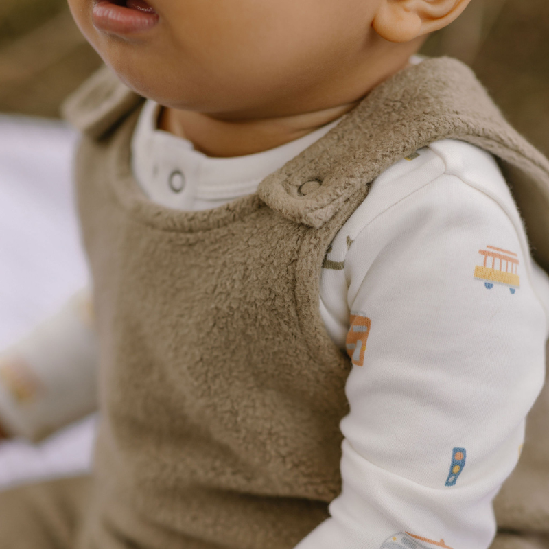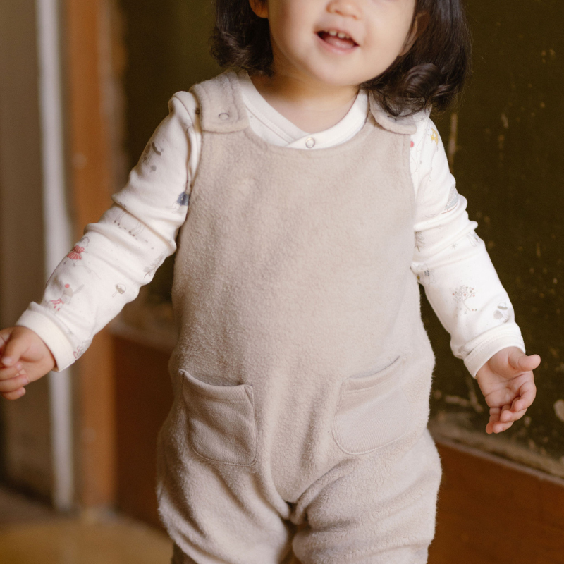 The Teddy Fleece Overall is as cozy as it is charming — a true cold-weather essential for your little one. Made from 100% GOTS Organic Cotton fleece, this relaxed, harem-style overall is designed for easy layering and all-day comfort. Thoughtful details like brass snaps at the shoulders and crotch and two patch pockets make dressing simple while adding a touch of texture and style. Perfect for playtime or cozy days at home, it’s a go-to favorite for the season. Pehrs well with our One-Pieces & Booties for the ultimate cozy combo.