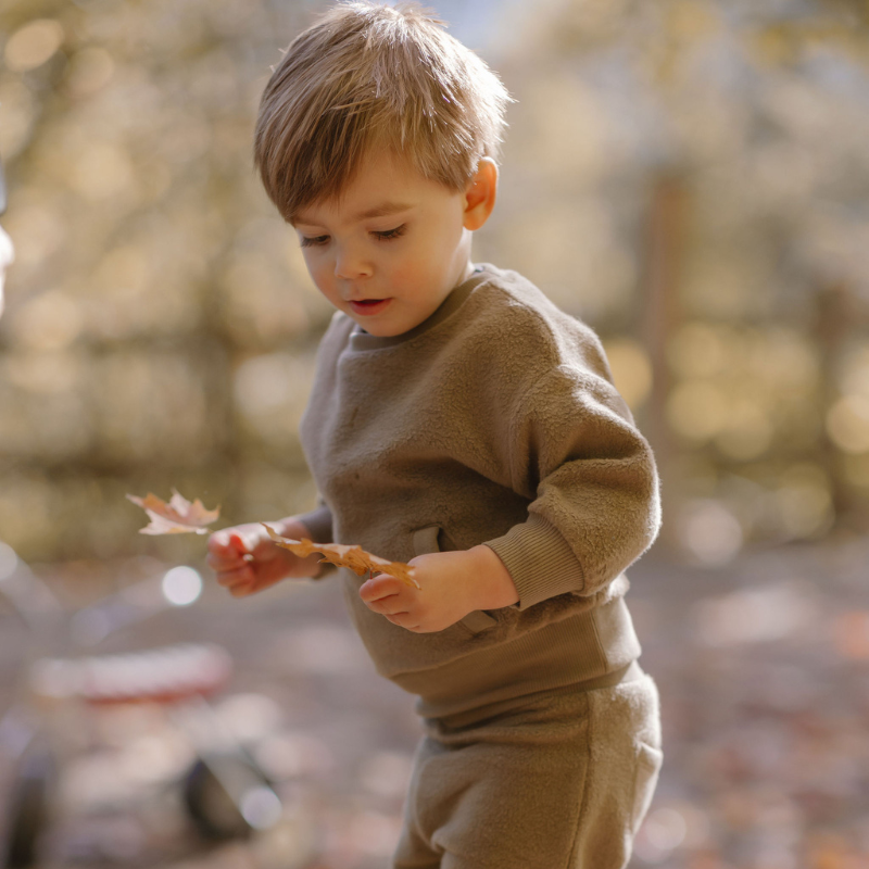 Crafted in 100% organic cotton fleece and dyes, gentle on skin and the planet.