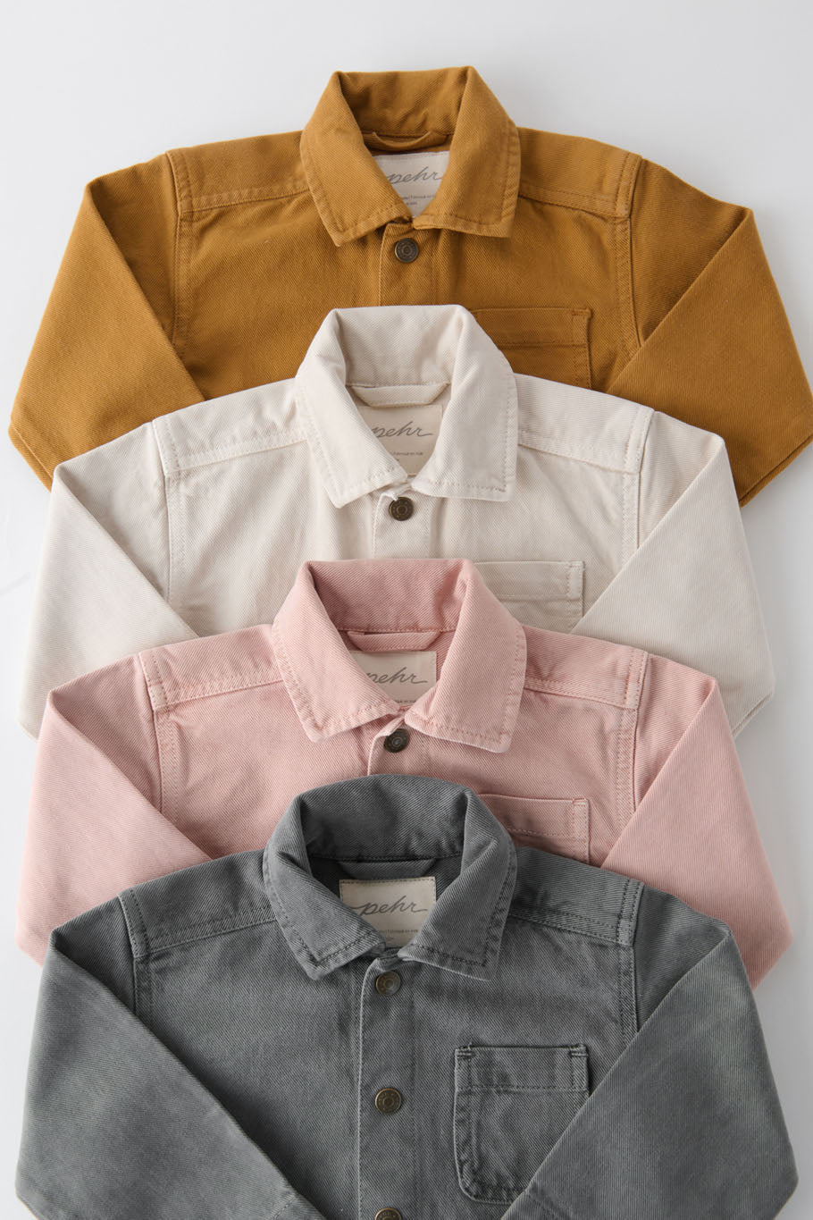 Your go-to lightweight, livable layer. Our Chore Jacket is crafted from GOTS-certified 100% organic cotton twill—breathable, durable, and garment-dyed for a soft, one-of-a-kind vintage look. With classic utility details and an easy, roomy fit, it’s a livable layer you’ll reach for again and again—perfect for cooler days, transitional weather, and everyday adventures. Our twill is safe for sensitive skin, built to withstand play, and repeat wears. Pehr with the Twill Shorts or Utility Jogger for a stylish matching set.