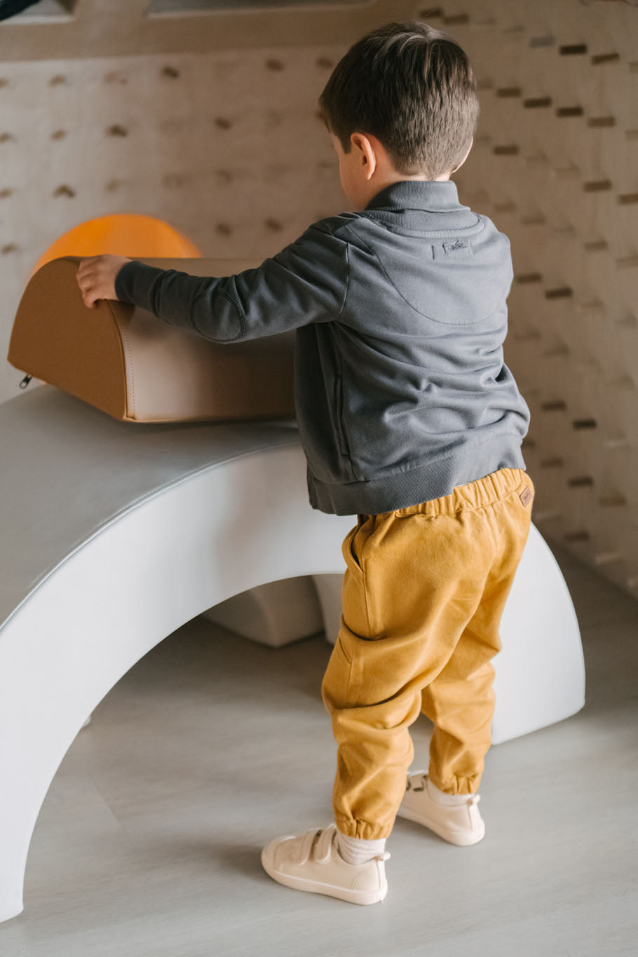 Built to keep up with busy, growing little ones. Our Utility Joggers are crafted from GOTS-certified 100% organic cotton twill—durable and softly structured to handle rough play and frequent washes, while staying gentle on sensitive skin. Garment-dyed for a vintage, worn-in feel, they feature a comfy elastic waistband and patch front details - it's a livable everyday staple for all-day adventures. Pehr with the Chore Jacket for a stylish matching set.